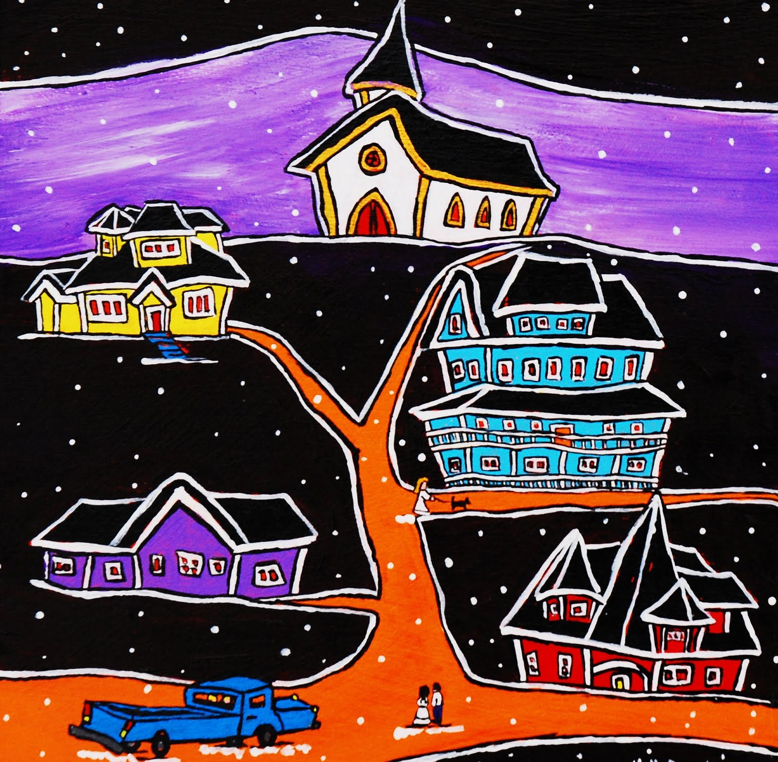 This is my last post out of 7 for this week. I have been going like crazy getting ready for the Nova Scotia Folk Art Festival in Lunenburg July 31, 2011 from 12:00 noon until 4:00. Don't miss out on the fun and stop by. I will also be at the Annapolis Royal Farmer's Market tomorrow Saturday 8:00 - 1:00 weather permitting. I had a great time doing this painting. It was so much fun with the cows. I felt like relaxing while doing it. So as the thoughts came to mind the cows in lawn chairs came alive. The cows are much cuter to paint than me. A view from the sky drinking me water and reading a book these are some of the things I like to do when I am not painting.